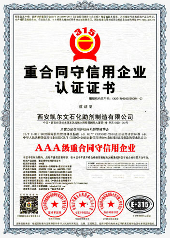 西安凯尔文石化助剂制造有限公司建于2011年,注册资金8000万元,总资产达2亿多元,占地面积30余亩,拥有500平米符合国家标准的实验室,年生产各类石化助剂产品50000余吨。公司现有职工80余人,高级职称技术人员10人,是从事化工、生物、能源及新材料等高科技产品的研制、开发、生产、销售及服务为一体的综合性企业。